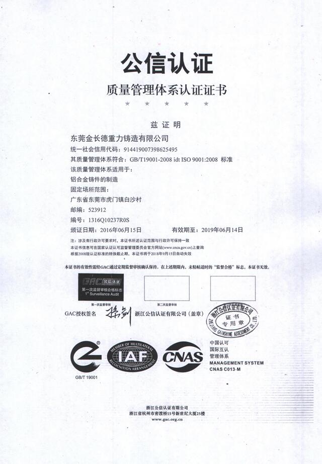 東莞金長(zhǎng)德重力鑄造有限公司始建于1990年,是一家專業(yè)從事鋁合金重力鑄造、低壓鑄造、砂型鑄造的企業(yè)。位于廣東省東莞市虎門鎮(zhèn)白沙一村,已經(jīng)有三十多年的歷史,專業(yè)從事于鋁合金鑄件的生產(chǎn)和加工。我司除了自己設(shè)計(jì)制作各種鑄造類模具外,鑄造和機(jī)械加工為一體是我公司的另外一個(gè)生產(chǎn)特色。我們可以根據(jù)客戶的要求,來(lái)樣,來(lái)圖進(jìn)行模具的設(shè)計(jì)和產(chǎn)品的生產(chǎn),做出各種毛胚件和成品件。還有自動(dòng)射芯機(jī),拋丸機(jī),噴砂機(jī),熱處理機(jī)器多臺(tái),CNC數(shù)控加工中心,銑床等設(shè)備。 我司的產(chǎn)品領(lǐng)域包括了新能源電機(jī)、機(jī)器人零件、汽摩配件,火車零件,機(jī)械零件,馬達(dá)風(fēng)機(jī),空壓機(jī)系列,印刷機(jī)械零件,木工和醫(yī)療器械零件等類型,產(chǎn)品出口到意大利,法國(guó),美國(guó),英國(guó),以色列,日本,臺(tái)灣等國(guó)家和地區(qū),深受國(guó)內(nèi)外客戶的認(rèn)可和好評(píng)。